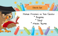 Bu etkinlik setinde “Pamuk Prenses ve Yedi Cüceler ” masalı..