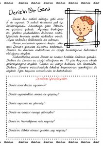 “Deniz’in Bir Günü” isimli okuma anlama etkinlik sayfasını aşağıdaki küçük resme tıklayarak bilgisayarınıza indirebilirsiniz.