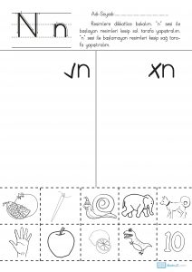 • Dik temel harfler N sesi  kelime etkinlik sayfaları