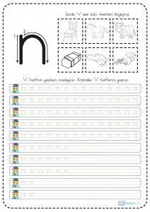 • Dik temel harfler N sesi küçük harf yazma etkinlik sayfası 2