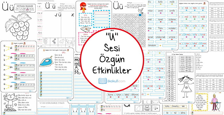 - Dik temel harfler Ü sesi kelime etkinlik sayfaları