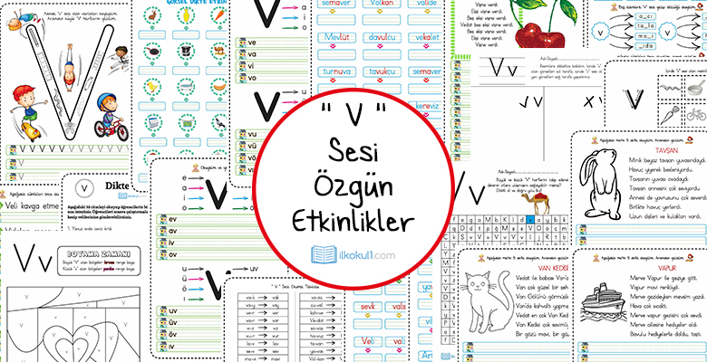 Tamamı özgün 33 etkinlik sayfası bulunmaktadır.  Dik temel harfler etkinlikleri “v” sesi çalışmaları ise şu şekilde;