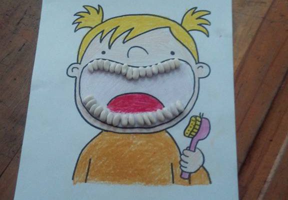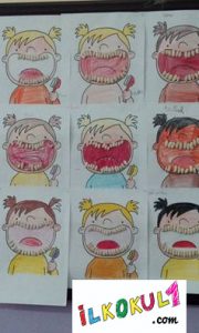 Bu noktadan sonra iş öğrencilerin el becerilerine kalıyor. Fasülye ile diş fırçalama boyama ve yapıştırma etkinliği ile ilgili örnek çalışmalara göz atalım.
