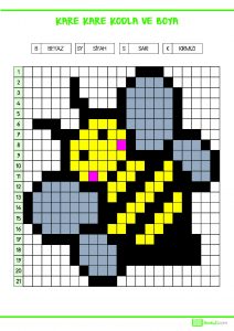 Daha önce paylaştığımız kare kare kodlama 1 ve kare kare kodlama 2 çok beğenildi. Bugün de başka bir kare kare kodlama etkinliği ile verilen yönergelere uygun olarak satır satır boyama yapıyoruz. Pixelart olarak bilinen kodlama çalışmamızı yazının sonundaki küçük resme tıklayarak bilgisayarınıza indirmeniz mümkün.