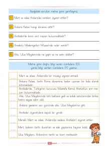 Meraklı Mert ülkemizi gezmeye başladı. Mert ve ailesinin ülkemizin tarihi ve doğal güzelliklerini keşfetmelerini anlatan 5 farklı okuma anlama metnini paylaşıyoruz. 2. sınıf veya 3. sınıf öğrencileri için okuma-anlama metni olarak kullanılabilecek çalışmaları aşağıdaki butondan indirebilirsiniz.