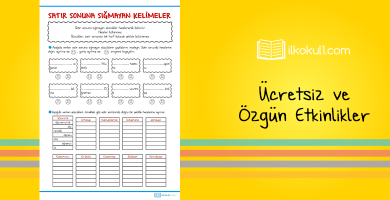 3. Sınıf Türkçe Satır Sonuna Sığmayan Sözcükler çalışma kağıdını aşağıdaki küçük resme tıklayarak bilgisayarınıza indirebilirsiniz.
