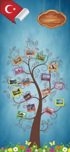 Bu yıl okulumda sene başında 1. sınıflar 10 şube olarak planlanmıştı. Şubelerinde ortalama 35 er kişi olduğunu düşünürsek uyum haftası bile yapılmadan okula başlayan 350 yeni çocuk demekti bu. Bu çocukların okuldaki diğer öğrencilerle birlikte aynı anda okula başlamaları ders giriş çıkışlarında kaybolan ve sınıfını bulamayan öğrenciler olarak bir sorun olacaktı. Okulun çok katlı ve karmaşık olduğunu da eklemem gerek. Bu kaybolmaları engellemek için sene başında her sınıfa bir figür belirledik ve az bir maliyetle sınıf kapılarına poster hazırlayıp yapıştırdık. 35×50 boyutunda olan bu posterleri sınıf kapılarına yapıştırdıktan sonra aynı figür ile öğrencilere yaka kartı hazırladık. Kızlar için ayrı erkekler için ayrı kartlar tasarladık. Aşağıda örnek bir sınıf kapımızı ve öğrenci kartını görebilirsiniz.