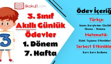 3. Sınıf Günlük Ödevler 1. Dönem 7. Hafta