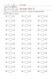 “Verilmeyenli Çıkarma İşlemi” Alıştırma Sayfaları