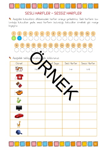 lunduğu kutucukları yeşile, sessiz harflerin bulunduğu kutucukları örnekteki gibi maviye