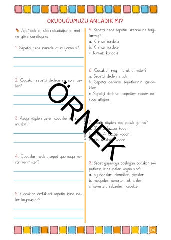 Aşağıdaki soruları okuduğunuz met- 5. Sepetçi dede sepetin üzerine ne bağ-