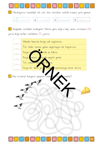 C Kaç numaralı karganın peynire ulaştığını bulabilir misiniz?