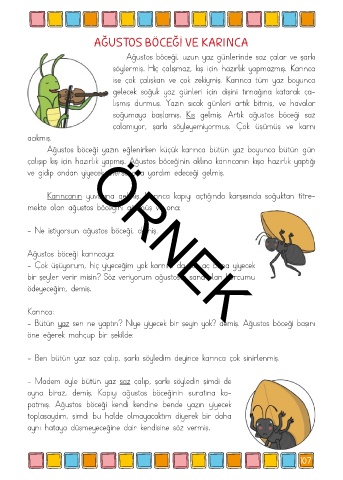 - Bütün yaz sen ne yaptın? Niye yiyecek bir şeyin yok? demiş. Ağustos böceği başını