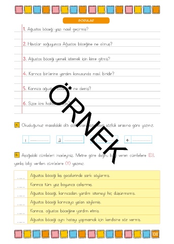 A Okuduğunuz masaldaki altı çizili olan sözcükleri sözlük sırasına göre yazınız.
