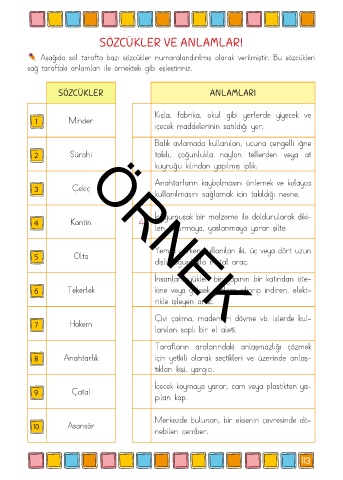sağ taraftaki anlamları ile örnekteki gibi eşleştiriniz.