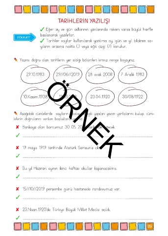 Yazımı doğru olan tarihlerin yer aldığı bölümleri kırmızı renge boyayınız.