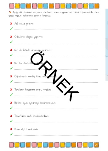 Aşağıdaki cümleleri okuyunuz cümlelerin sonuna gelen “mi “ ekini doğru şekilde altına
