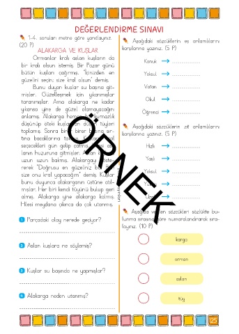 1-4. soruları metne göre yanıtlayınız. Aşağıdaki sözcüklerin eş anlamlılarını
