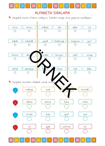 Aşağıdaki sözcükleri alfabetik olarak sıralayınız.