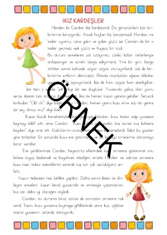 yine tartıştılar. En sonunda kuşu eve götürmeye ve bu konuyu annelerine danışmaya