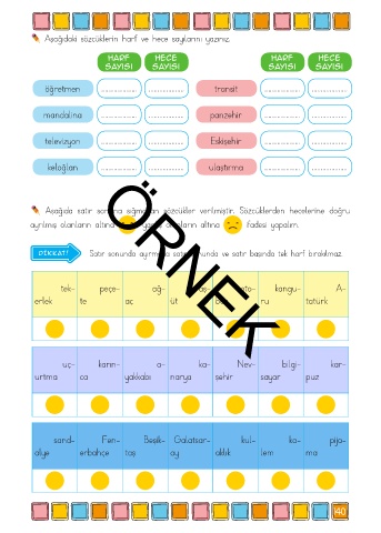 Aşağıda satır sonuna sığmayan sözcükler verilmiştir. Sözcüklerden hecelerine doğru