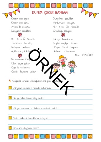 Aşağıdaki soruları, okuduğunuz şiire göre yanıtlayınız.