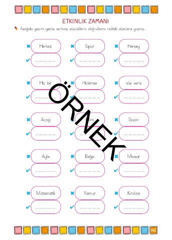Aşağıda yazımı yanlış verilmiş sözcüklerin doğrularını noktalı alanlara yazınız.