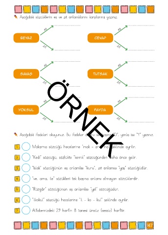 Aşağıdaki sözcüklerin eş ve zıt anlamlılarını karşılarına yazınız.