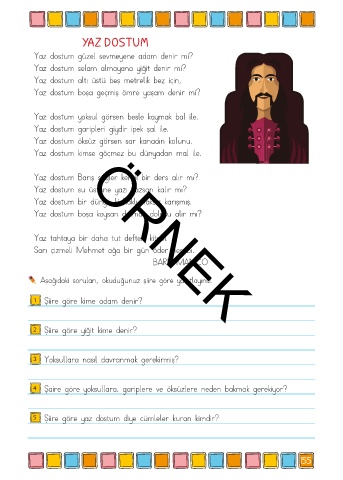 5 Şiire göre yaz dostum diye cümleler kuran kimdir?