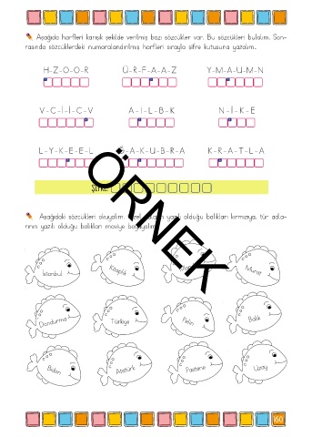 rasında sözcüklerdeki numaralandırılmış harfleri sırayla şifre kutusuna yazalım..