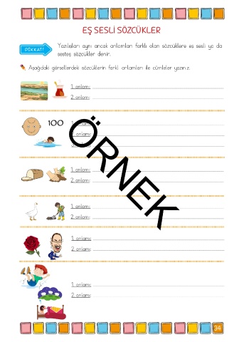 Aşağıdaki görsellerdeki sözcüklerin farklı anlamları ile cümleler yazınız.