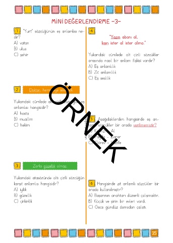 1 “Yurt” sözcüğünün eş anlamlısı ne- 4