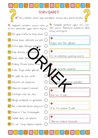 Aşağıdaki cümlelerin sonuna nokta ya Aşağıdaki yanıtlara uygun soru cüm-