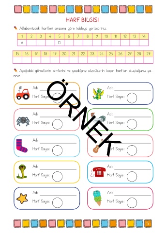 Aşağıdaki görsellerin isimlerini ve yazdığınız sözcüklerin kaçar harften oluştuğunu ya-