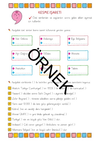 Aşağıdaki özel isimleri kesme işareti kullanarak yeniden yazınız.