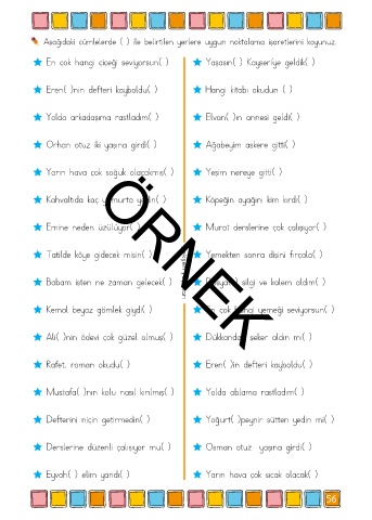 Ali( )nin ödevi çok güzel olmuş( ) Dükkandan şeker aldın mı( )
