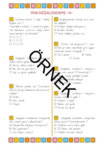 C) (,) (,) (?) 6 “Sınıfımı çok seviyorum( )” cüm-
