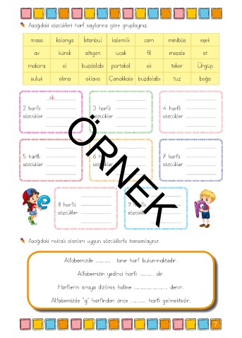 Aşağıdaki sözcükleri harf sayılarına göre gruplayınız.