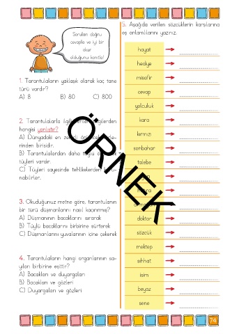 2. Tarantulalarla ilgili verilen bilgilerden kara .....................................
