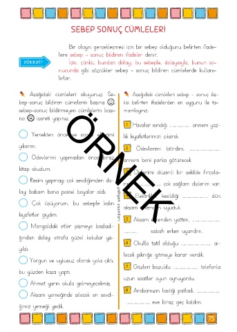 sebep-sonuç bildirmeyen cümlelerin başı- mamlayınız.