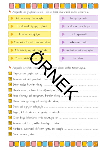 Aşağıdaki cümleleri sebep - sonuç cümleleri olacak şekilde tamamlayınız.