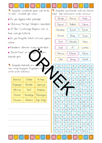 Aşağıdaki cümlelerde geçen özel isimle- Aşağıdaki sözcüklerden özel isim olanları