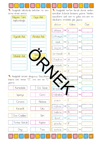 Aşağıdaki tablolarda belirtilen tür isim- Aşağıdaki harfleri karışık olarak verilen