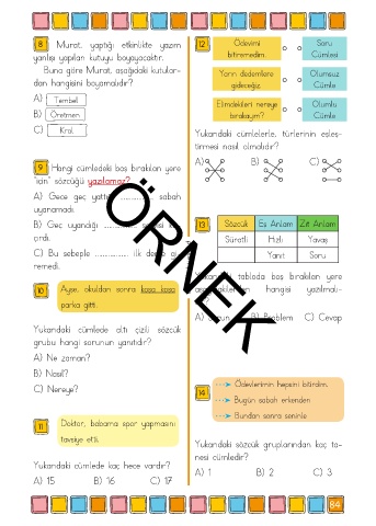 B) Geç uyandığı .................. servisi ka- 13 Sözcük Eş Anlam Zıt Anlam