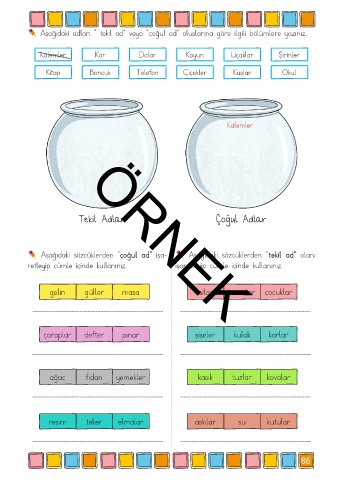Aşağıdaki adları “ tekil ad” veya “çoğul ad” oluşlarına göre ilgili bölümlere yazınız.