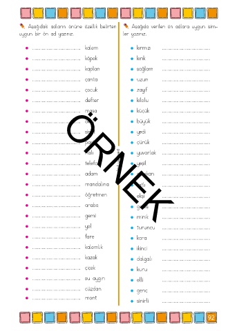 Aşağıdaki adların önüne özellik belirten Aşağıda verilen ön adlara uygun isim-