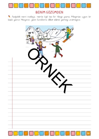 BENİM GÖZÜMDEN Aşağıdaki resmi inceleyip, resimle ilgili kısa bir hikaye yazınız. Hikayenize uygun bir başlık yazınız. Hikayenizi, yazım kurallarına dikkat ederek yazmayı unutmayınız. ÖRNEK 96