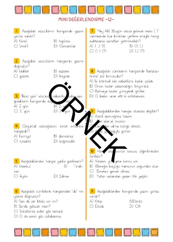 6 Aşağıdaki cümlelerin hangisindeki “de” nin 11 Aşağıdakilerden hangisinde yazım yanlışı