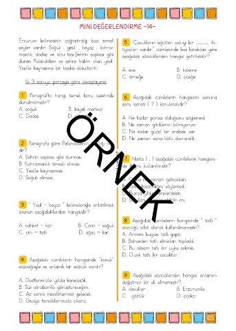 1 Paragrafta hangi temel konu üzerinde 6 Aşağıdaki cümlelerin hangisinin sonuna