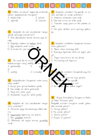 10 “Etekleri zil çalmak” deyiminde anlatılmak 15 Aşağıdaki cümlelerin hangisinde zıt an-